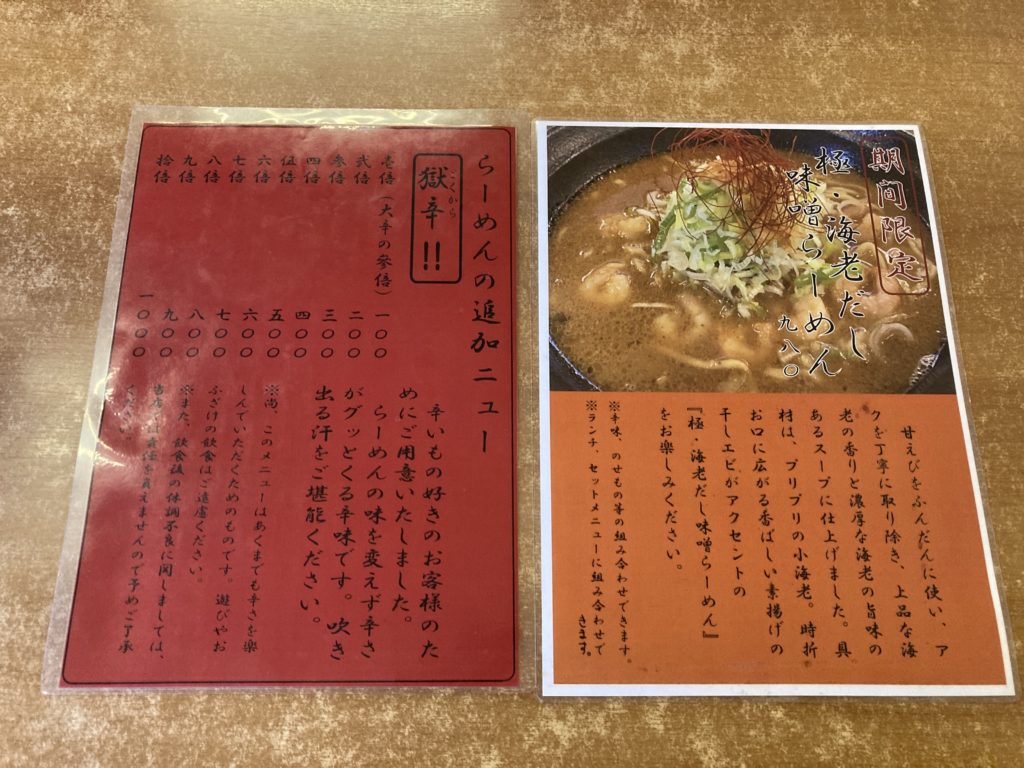 迷いましたが、今回は期間限定極・海老だし味噌らーめんを五倍でいただくことにしました。
