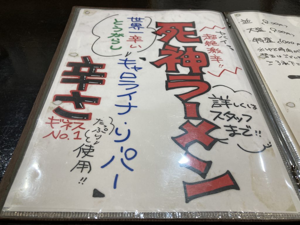 そして・・・今回の目的死神のメニュー。おどろおどろしい雰囲気がメニューからも伝わってきます。