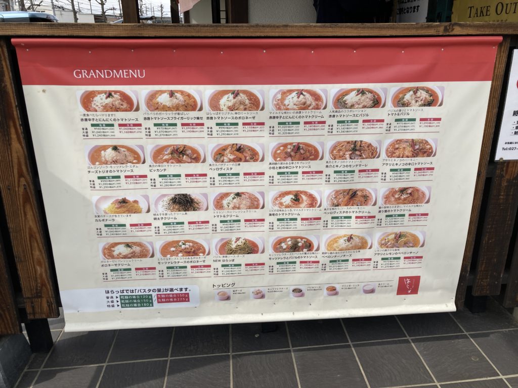 パスタの街高崎を代表するはらっぱは高崎市内に店舗を構える人気パスタ専門店。平日休日を問わず、多くのお客さんでにぎわいます。今回はその中の1つ高崎問屋町店へお邪魔しました。休日の昼下がり、外で待つお客さんも多くみられその人気ぶりがうかがえます。