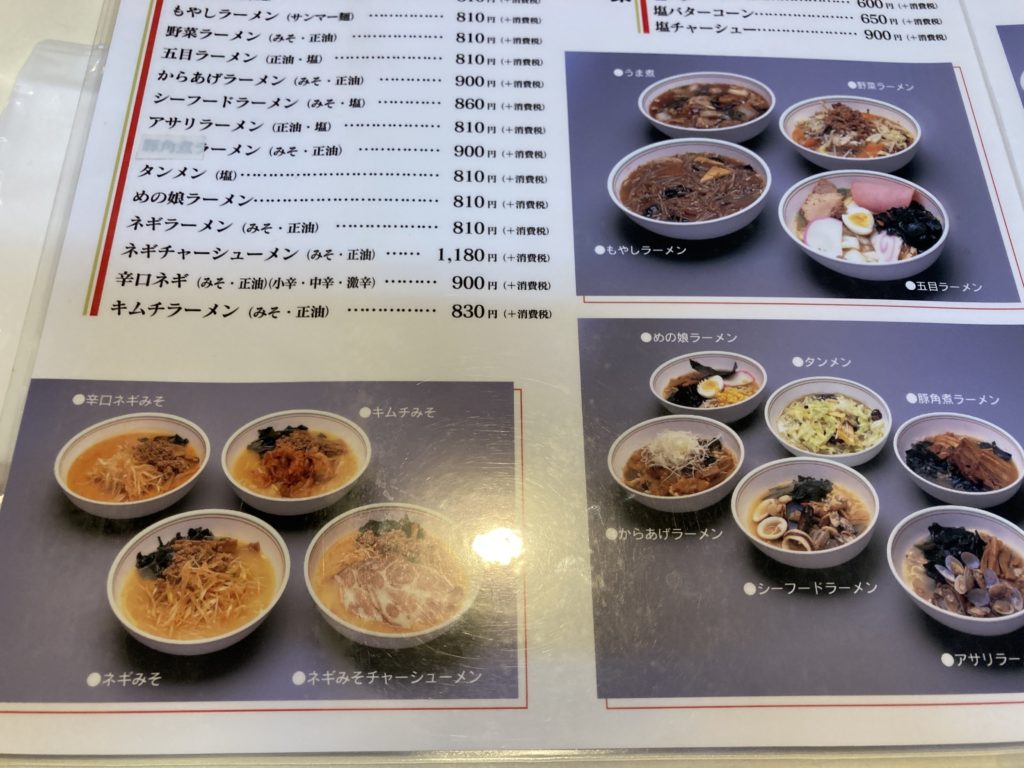 定番のみそ・正油・塩味を中心にめの娘にはうま煮やもやし、アサリ、キムチラーメンなど様々な麺メニューがラインナップ。