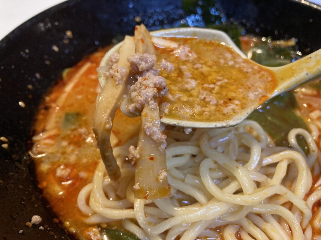 一口食べると濃厚まろやかなみそと、ピリリとまろやかな辛さが口の中に広がり美味〜!
