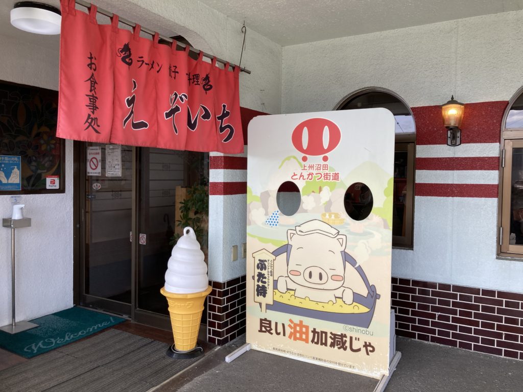 えぞいちは沼田市から片品村へ抜ける国道120号線沿いにあり、どこか懐かしさを感じるお食事処です。川場村へも近いので、観光がてらに利用できますね。