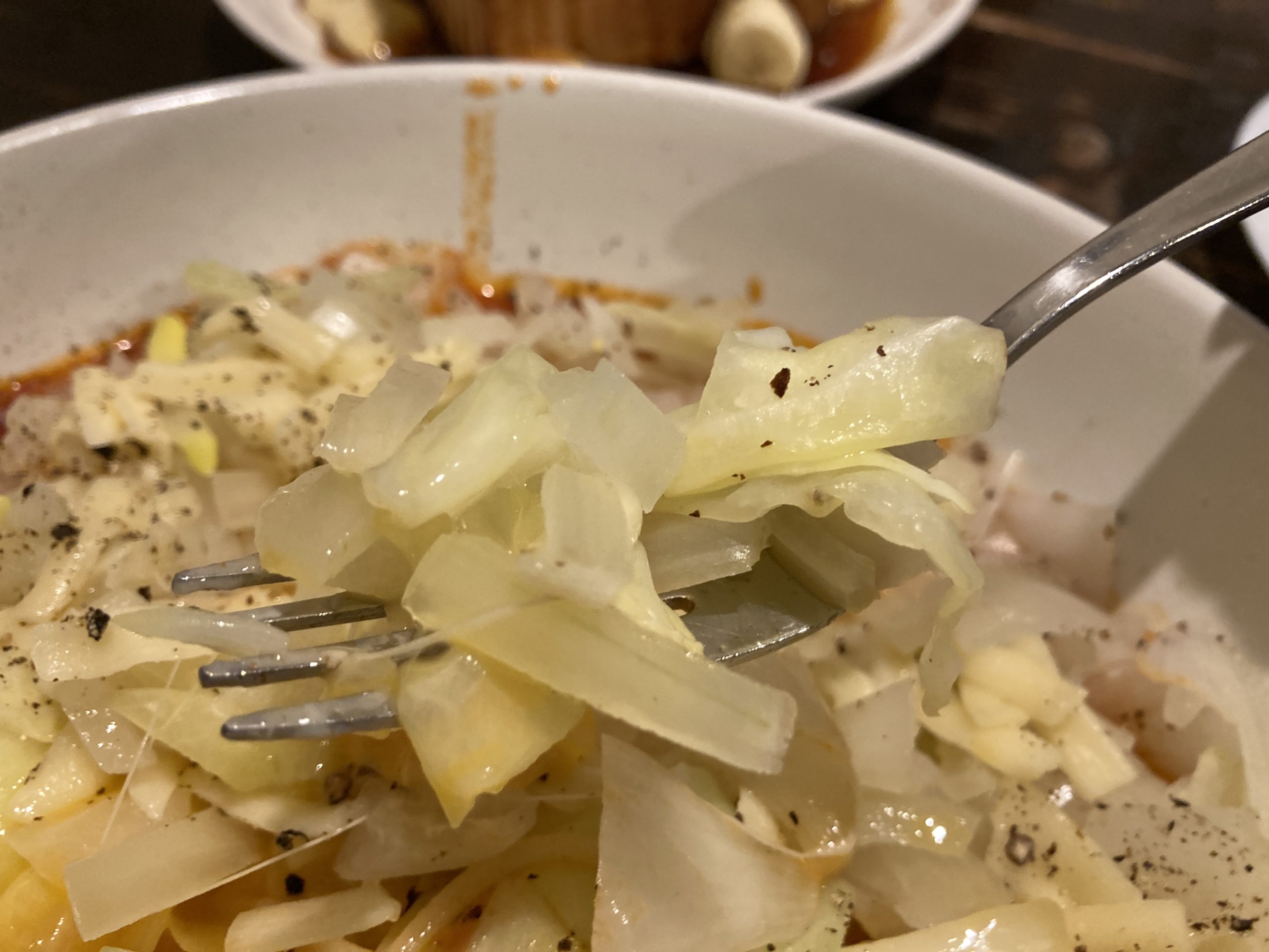 大きなパスタで笑うしかありませんでしたが「残せない」という使命に駆られ、早速かぶりつくことにしました。
