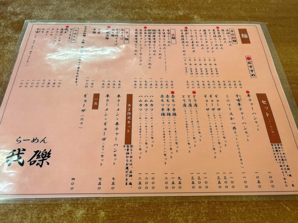 正油や塩、味噌といった定番テイストのらーめんや白・黒醤油、味噌らーめん、さらには焼きそばなど種類豊富な麺類があります。