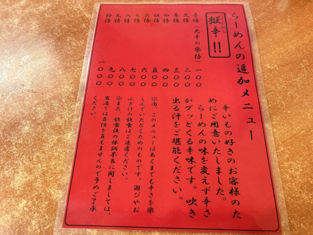 そして・・我礫ならではの激辛メニューがこちら。どのラーメンを何倍にしようか迷います。