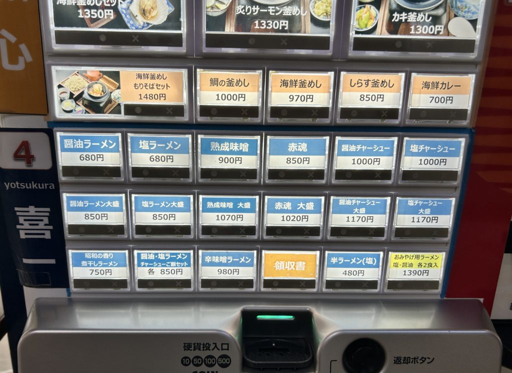 醤油・塩・熟成味噌などをはじめ昭和の香り煮干しラーメンなど、喜一自慢のメニューが並びます。そして!見つけましたよ!目当ての赤魂。