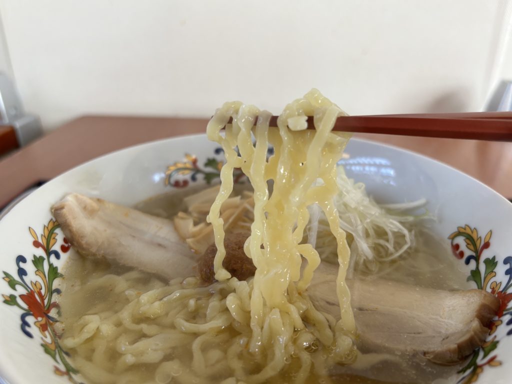 熟成多加水麺はプルルンな舌触りとコシがあり、スープがしっかり絡みます。