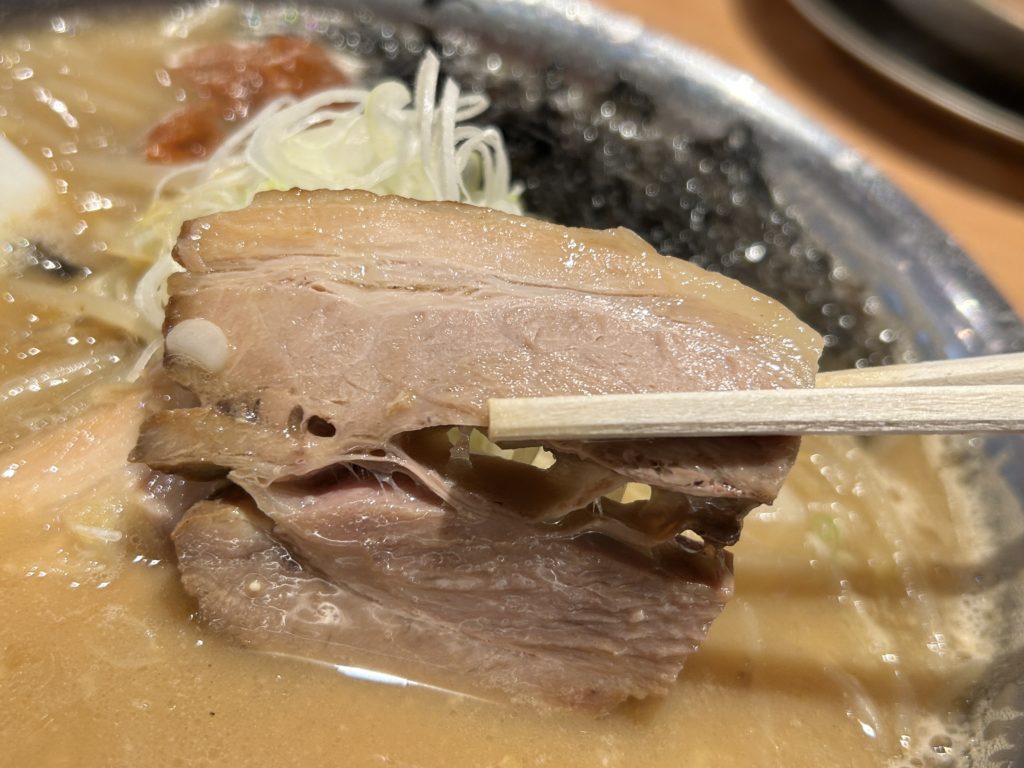 豚バラのチャーシューは肉厚で口の中でホロッとほぐれ、溶けていく柔らかさ。