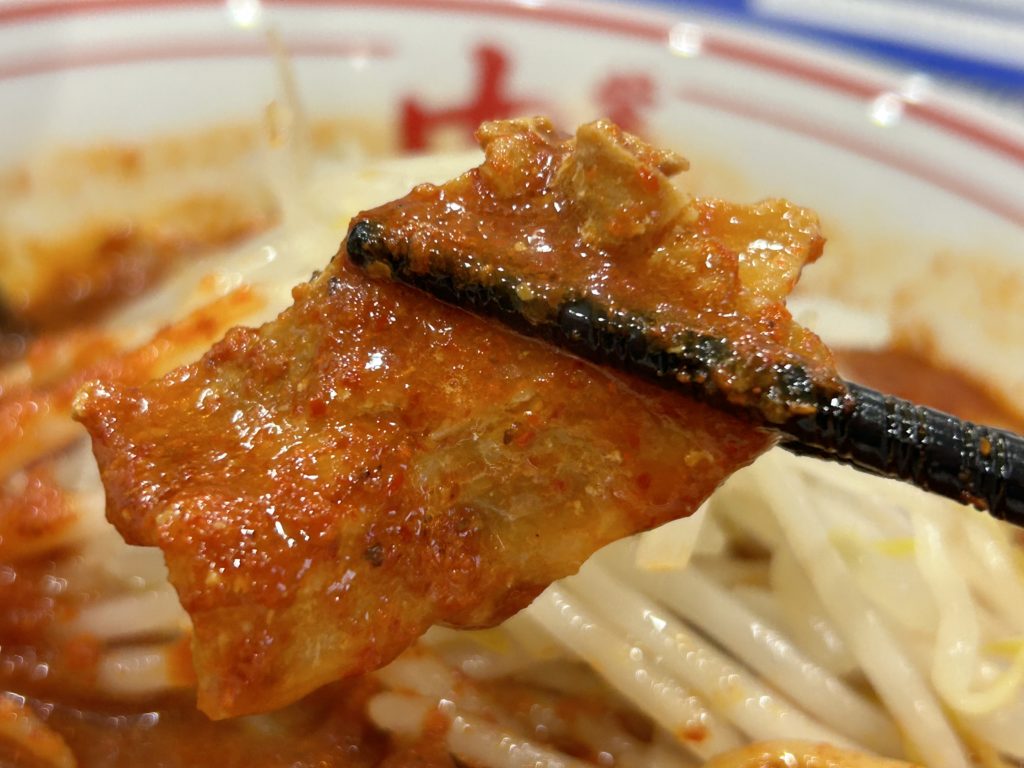 豚バラ肉と味噌スープそして唐辛子の辛さがおいしさのハーモニーを醸し出します。