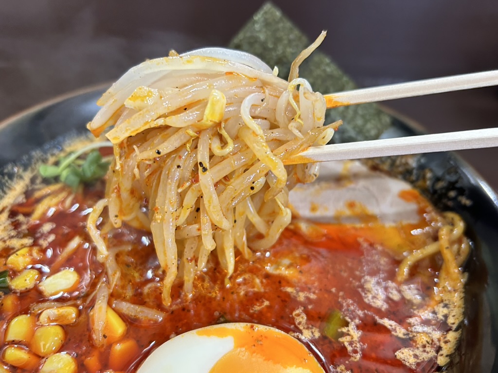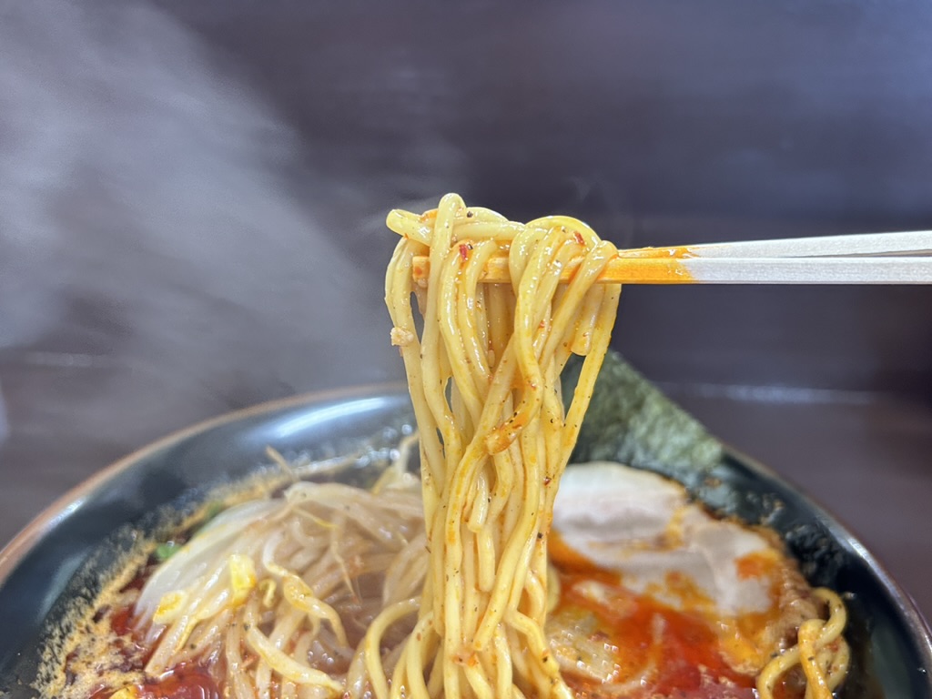 そして中細麺に濃厚な辛味噌のスープがガッツリ絡み、箸が止まりません。