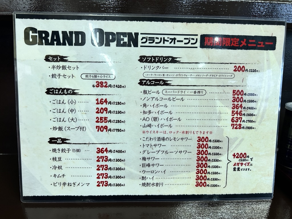 ごはんや炒飯もあり、セットにもできますよ。また焼き餃子や枝豆、冷奴などの一品料理やソフトドリンク、アルコールなどのドリンクメニューも充実しています。