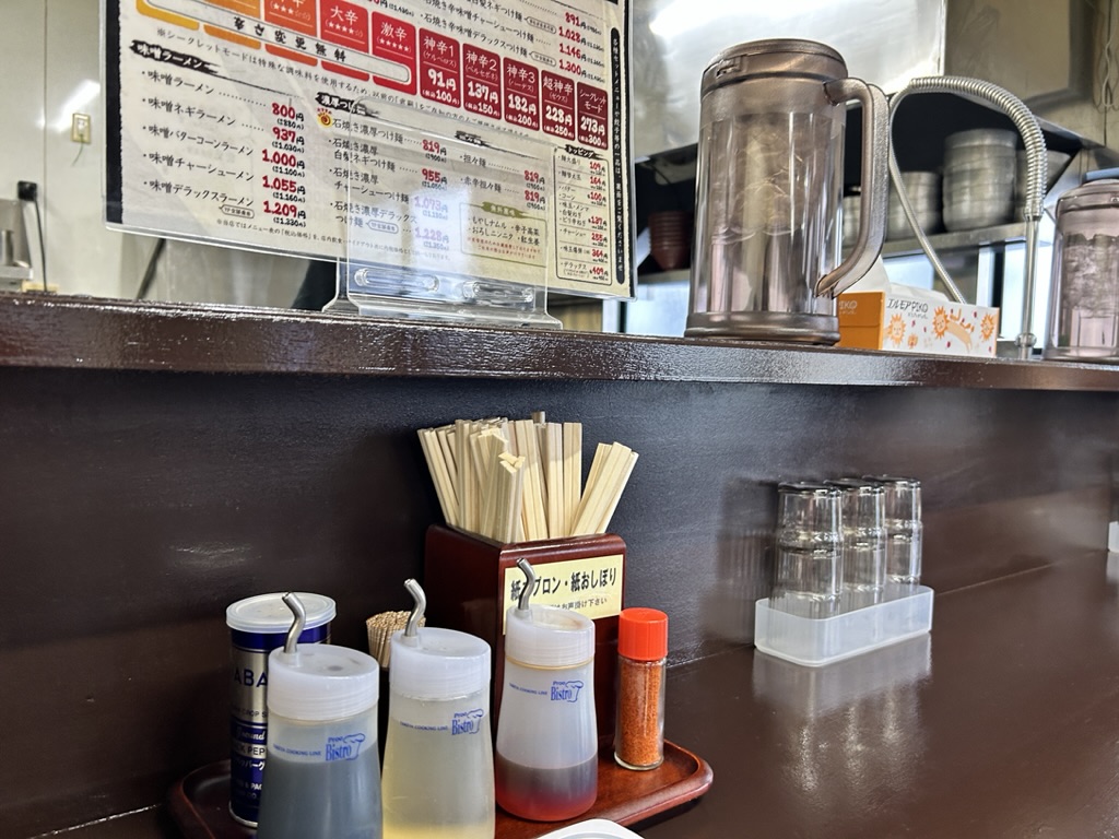 味噌ラーメンや辛味噌ラーメンをはじめ、石焼つけ麺、さらには坦々麺などバリエーション豊富なメニューが並びます。
