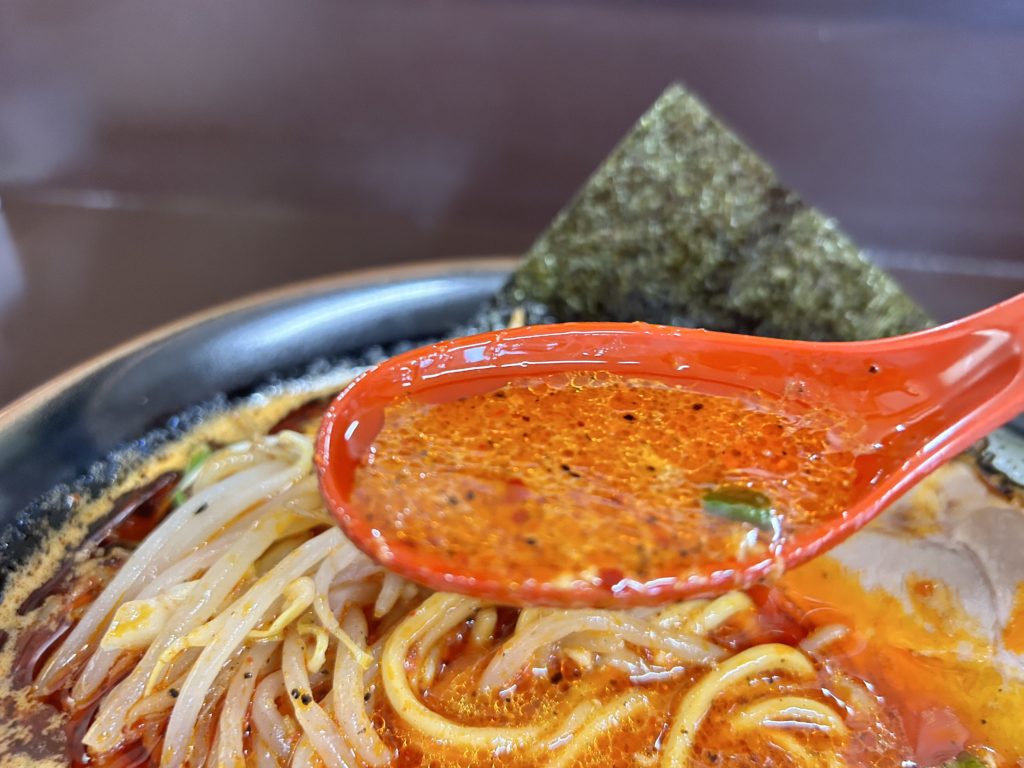スープはニンニクがバッチリ効いた濃厚な味噌。これに唐辛子の辛さが相まってたまらぬおいしさを醸し出します。