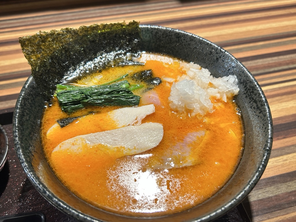 赤辛豚白湯らーめんの着丼です。