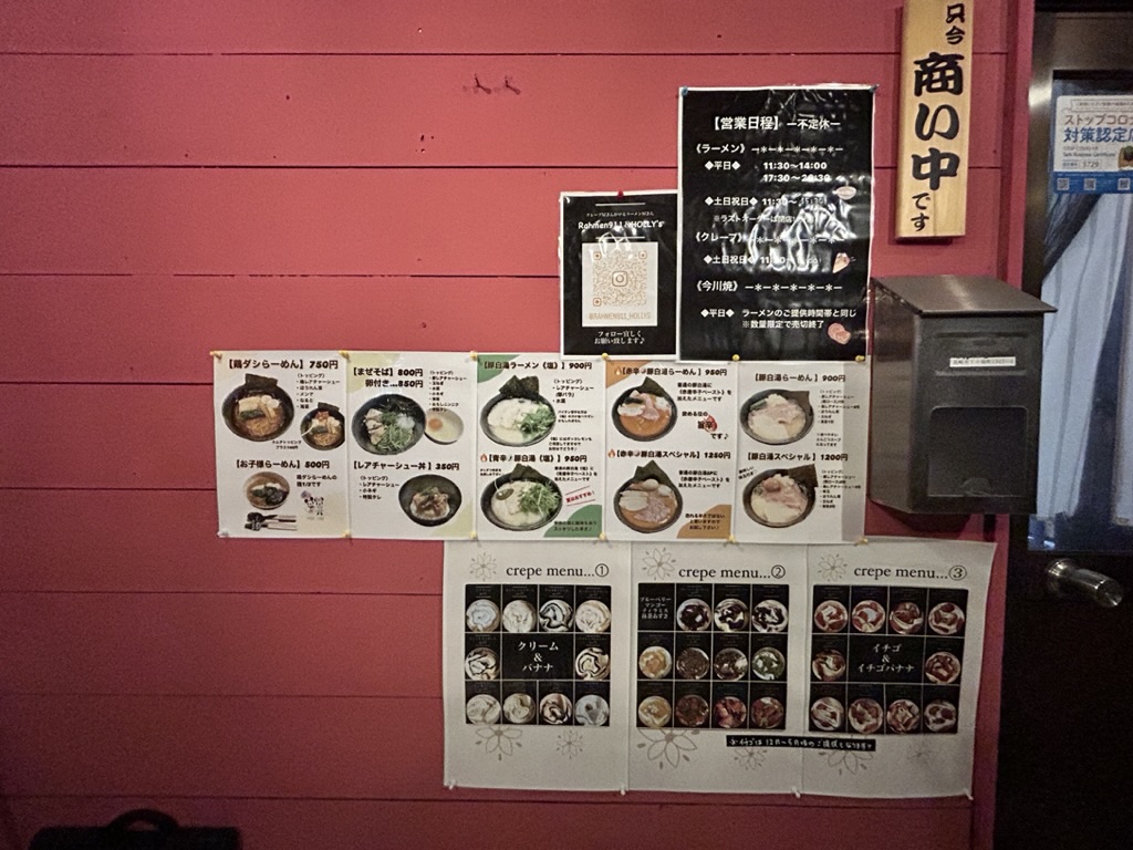 らーめんやまぜそばそしてクレープメニューがラインナップ
