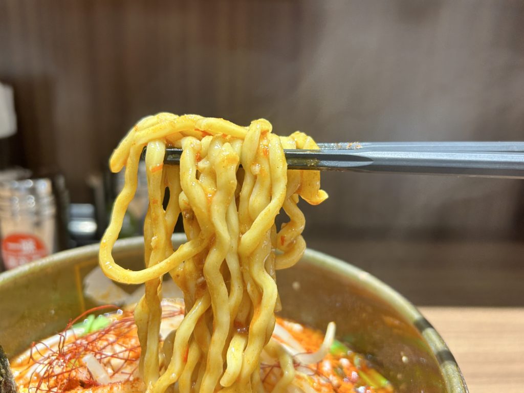 5種類のみそを合わせたという濃厚なみそスープにもちもちの中太ストレート麺が絡み、たまらぬ美味しさ。