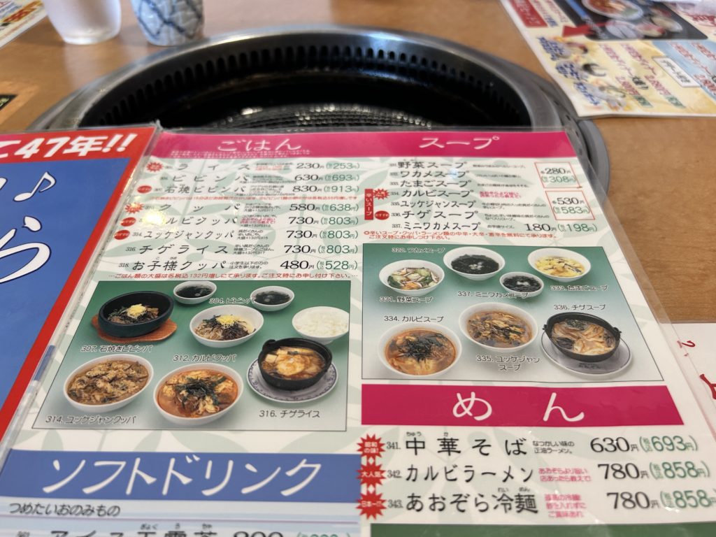 あおぞらは創業から50年以上という老舗の焼肉店。子供の頃からあの青い看板があったのが思い出されます。