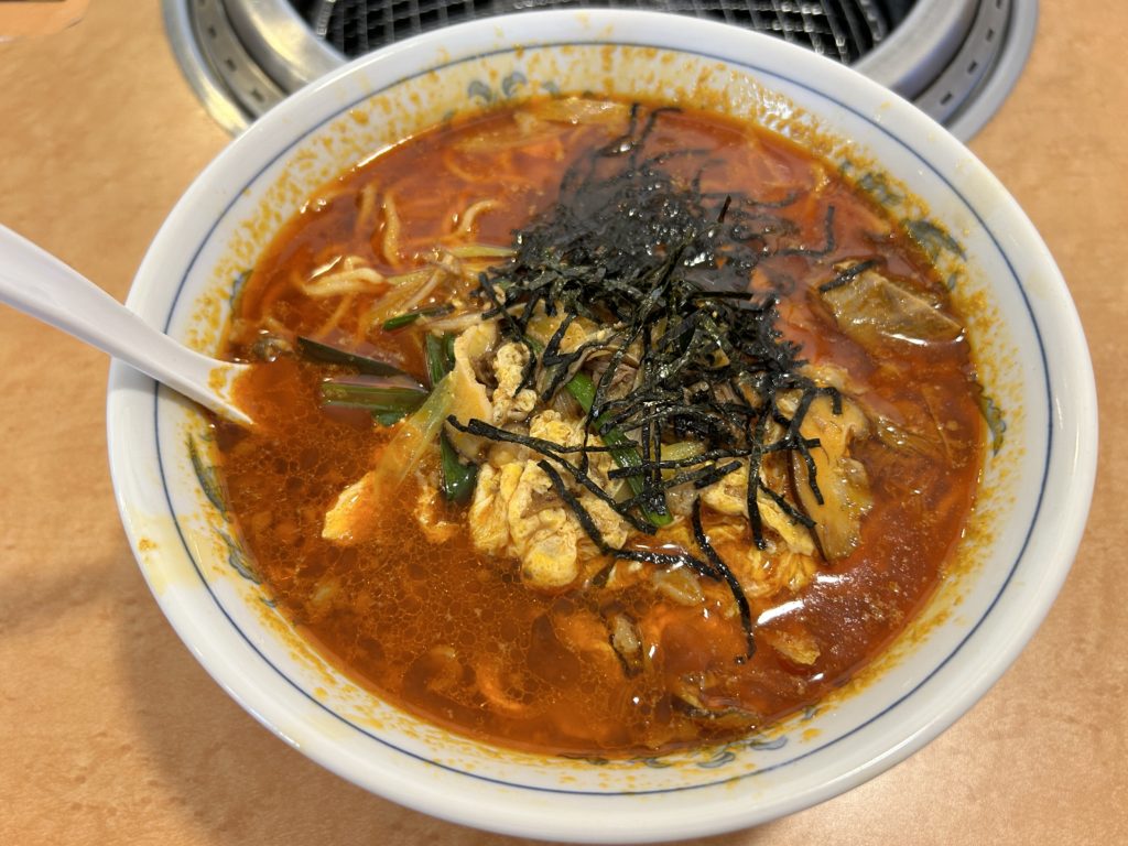 今では各地で食べられるようになったカルビラーメンですが、群馬の焼肉青空にルーツがあるといわれています。その中でも元祖ともいわれる「うまい焼肉あおぞら」のカルビラーメンを激辛で食べてきたのでご紹介しましょう。
