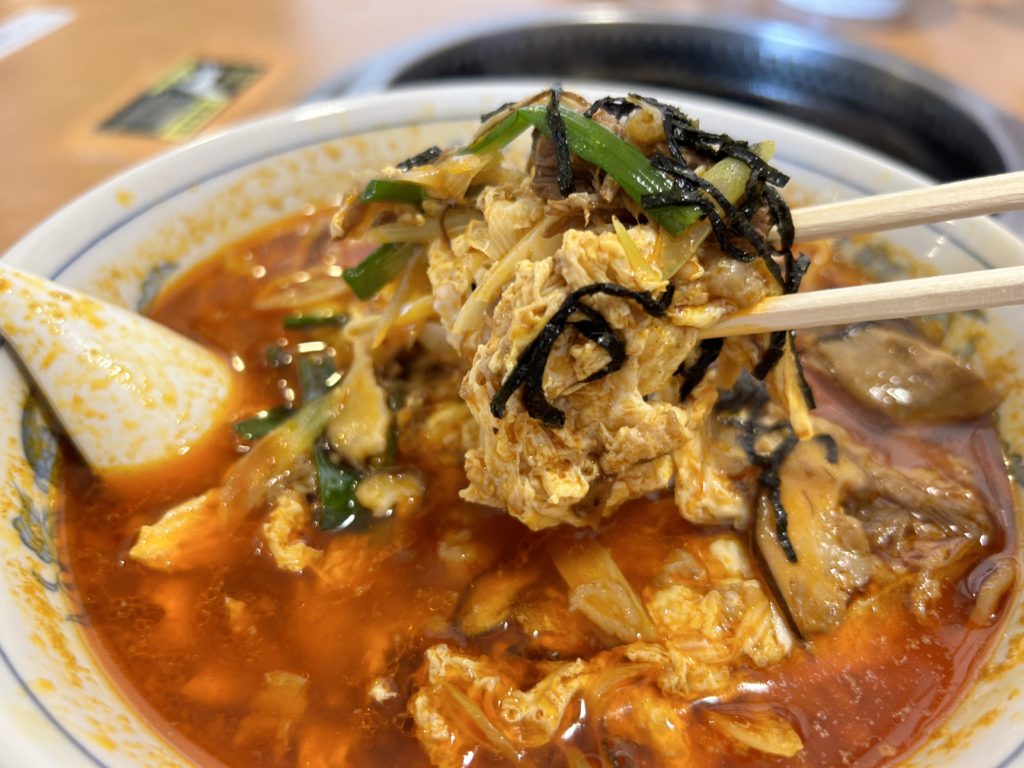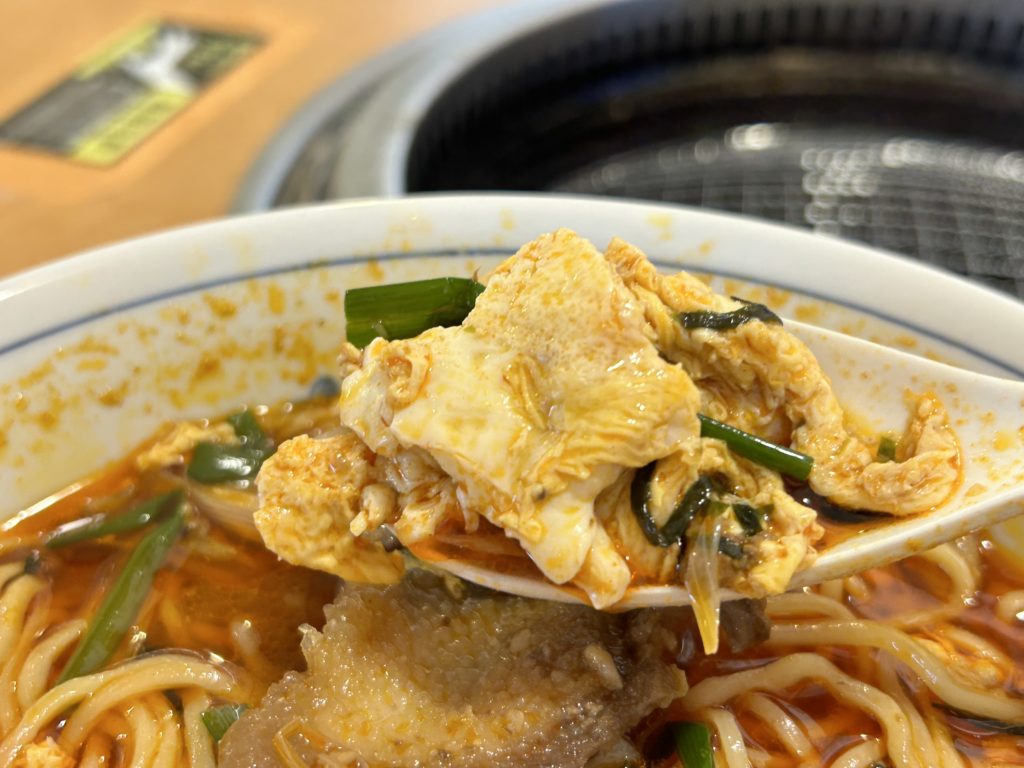 スープを一口いただくと、カルビから取った出汁が効いていて旨し!ほどよいシュッとした辛さがスープから感じられます。