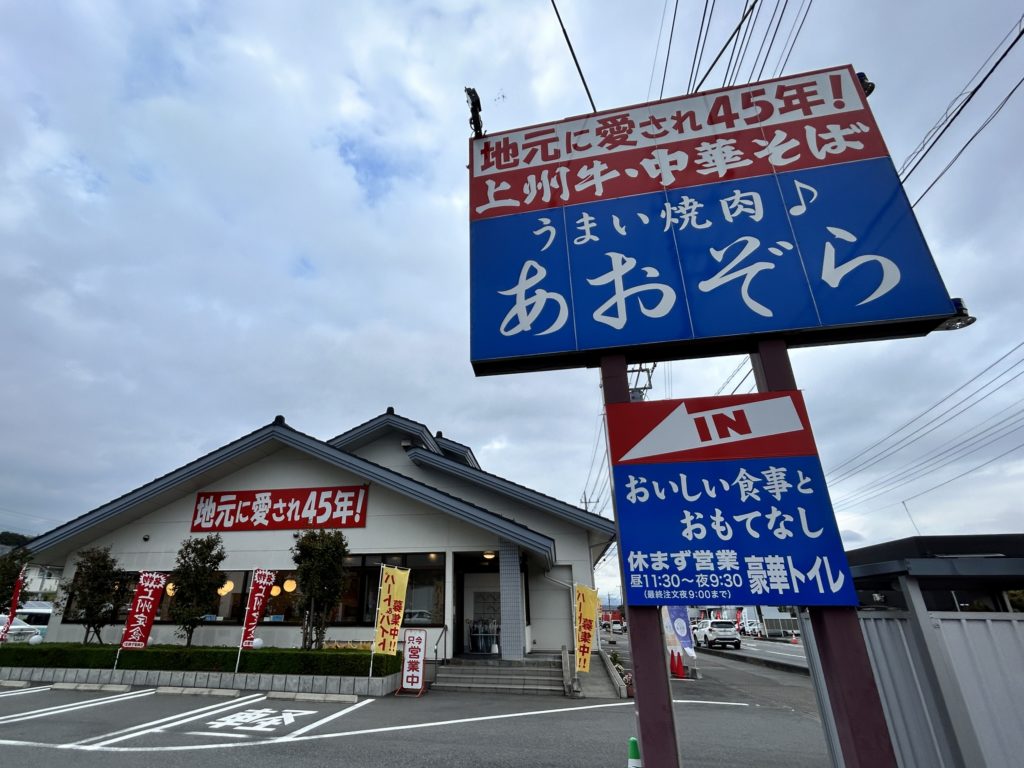 今回お邪魔したのは群馬県吾妻郡にある「うまい焼肉あおぞら原町店」。群馬の人気観光地ということもあり、ランチタイムを外しても焼肉を求めるお客さんで賑わいます。