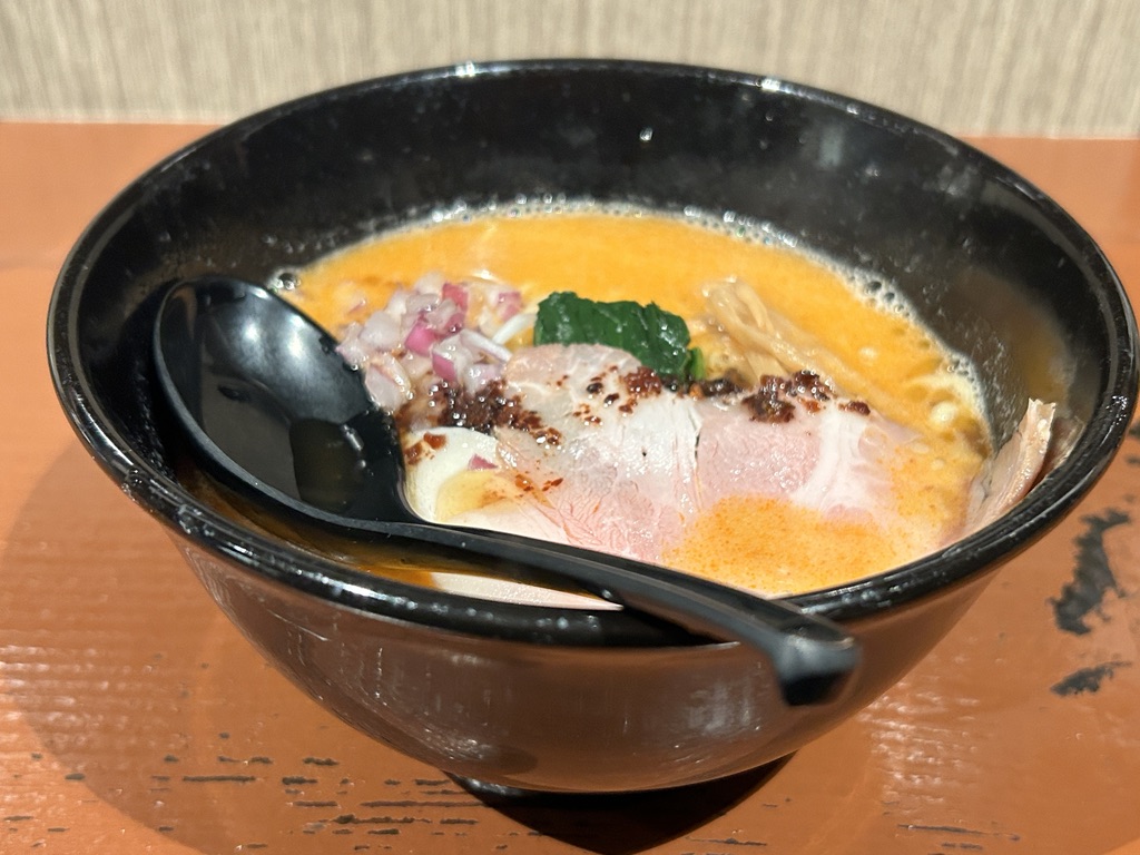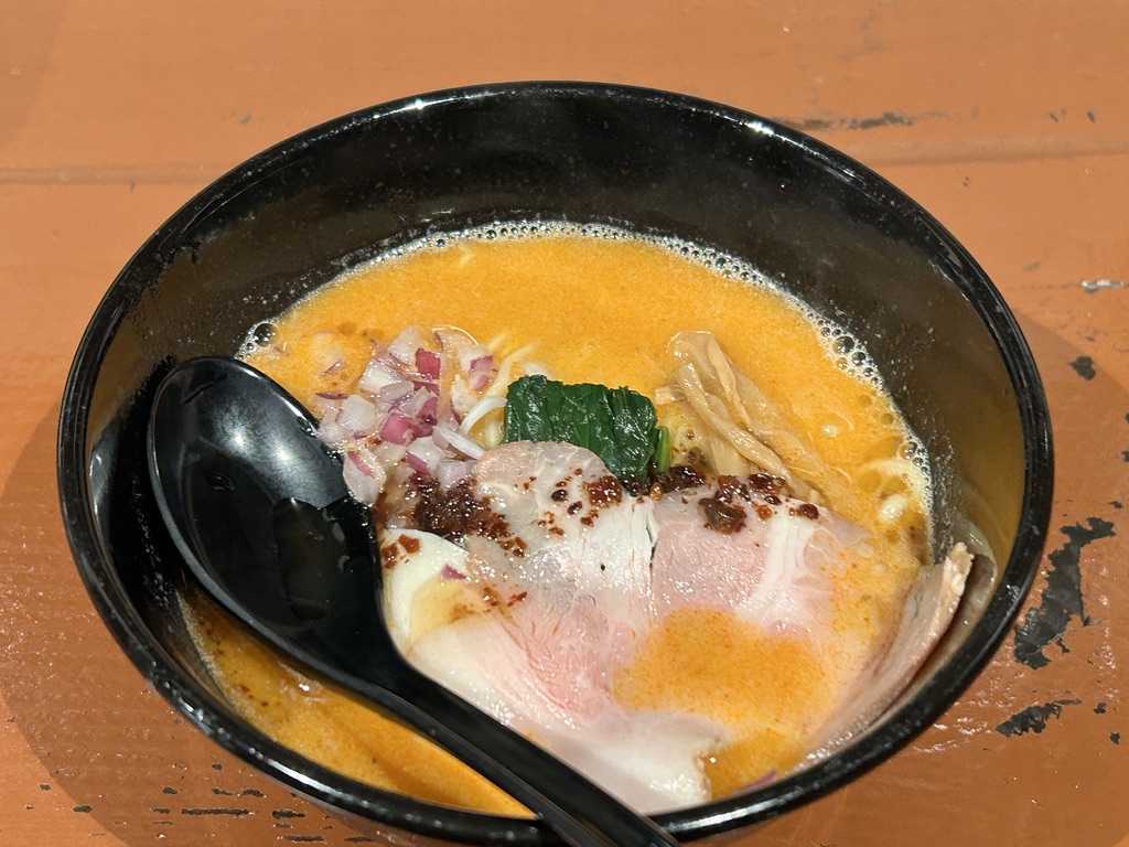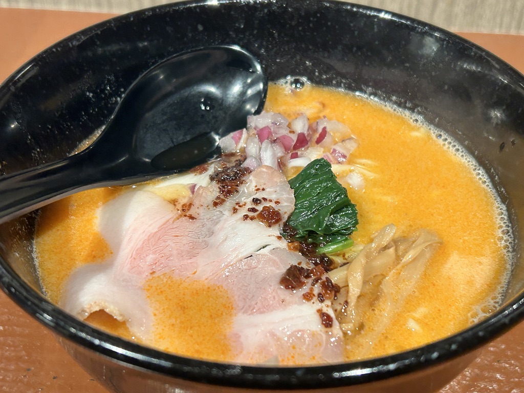 濃厚まろやか心も和む!ピリ辛貝だし豚骨赤ラーメン