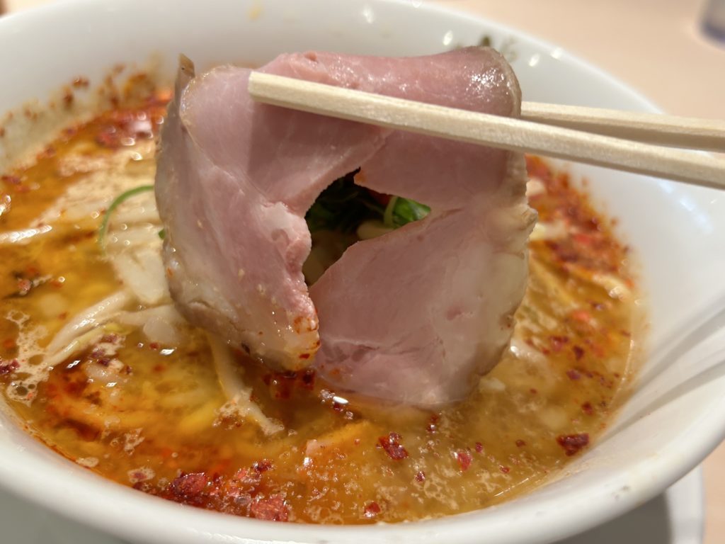 豚のチャーシューは低温熟成製法なのか、もっちりした食感の絶品。素材の美味しさが口の中に溢れます。