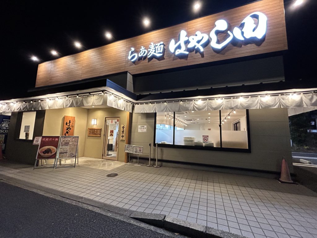 場所は国道14号線沿い、京成本線船橋競馬場駅からほど近い場所にあるらぁ麺はやし田 南船橋店。駐車場も広く車でのアクセスも良好。