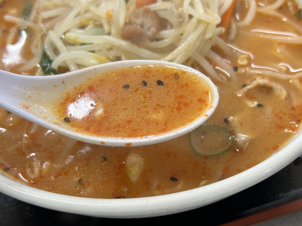 スープは鶏ガラでしょうか、あっさり目の味噌の中にコクが隠れています。そして、思いがけなく刺激的な辛さ!さすが大辛なだけあります。