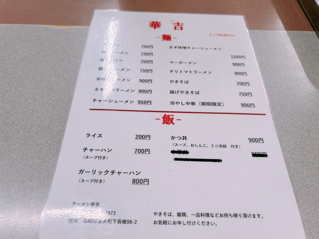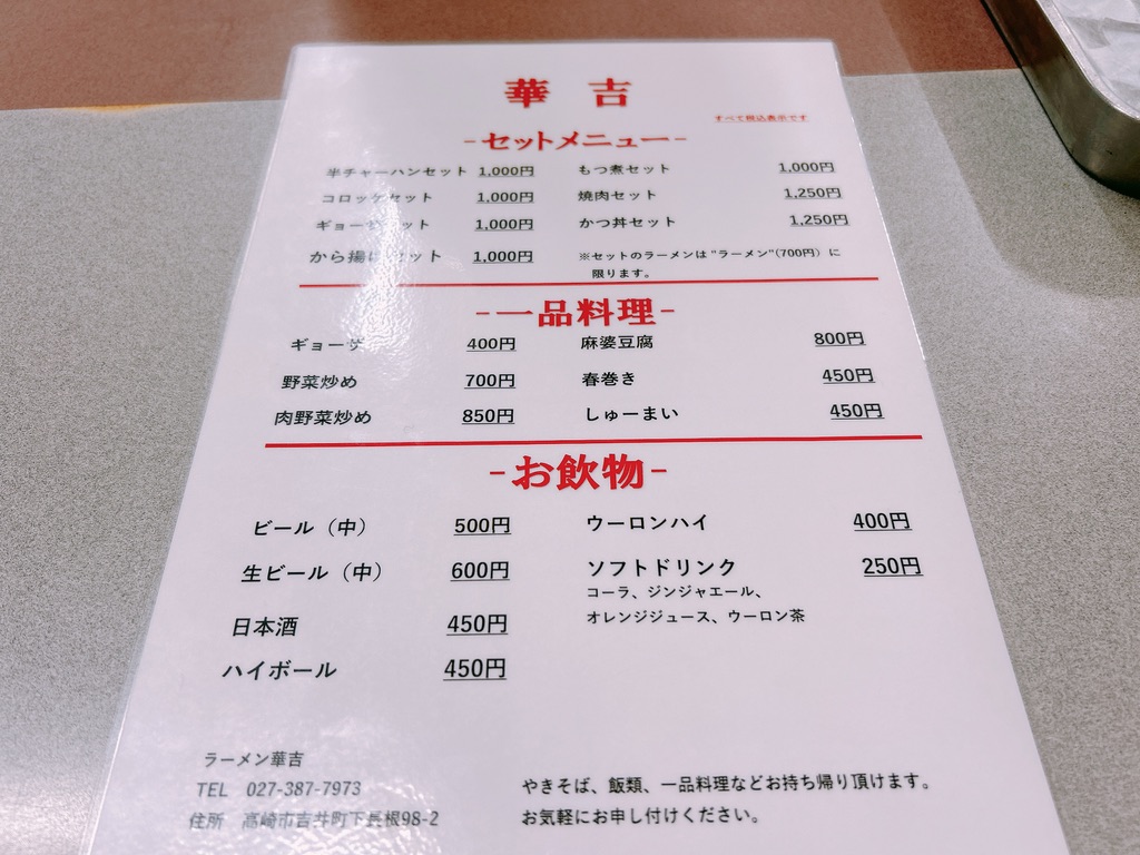 場所は国道254号沿い、高崎市吉井町にあるこちらがラーメン華吉。ノスタルジックな雰囲気漂う昔ながらのラーメン店の佇まいです。