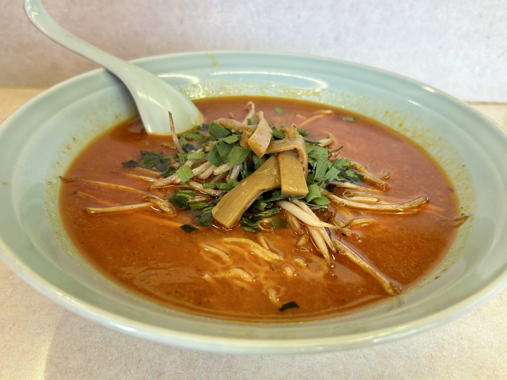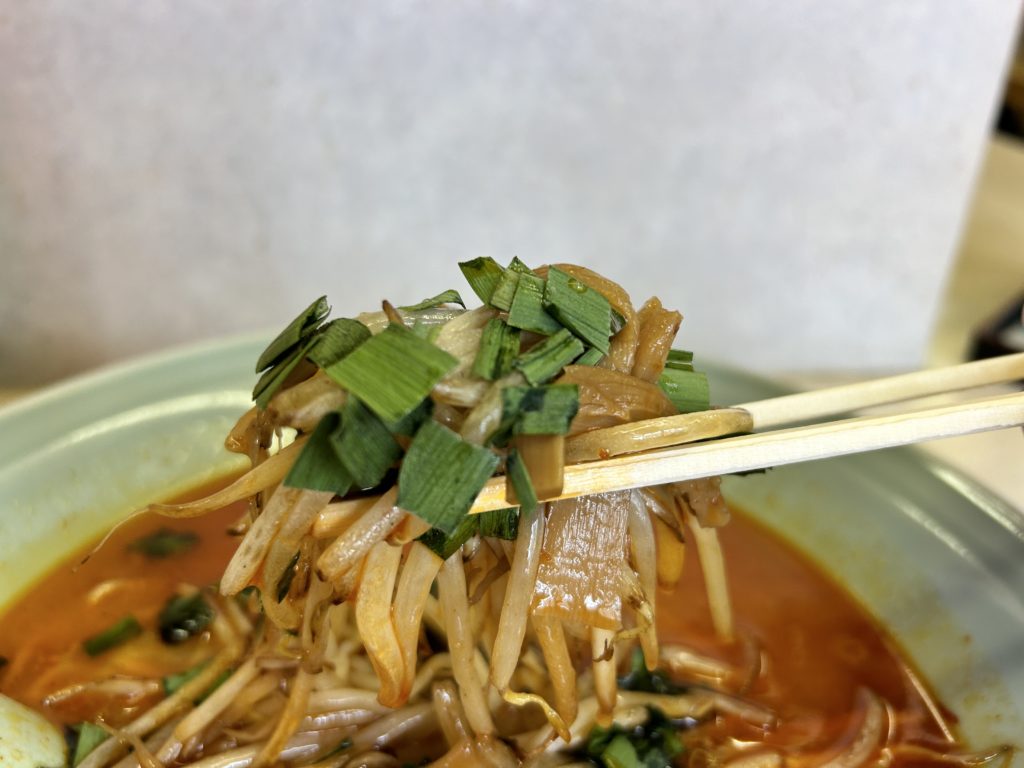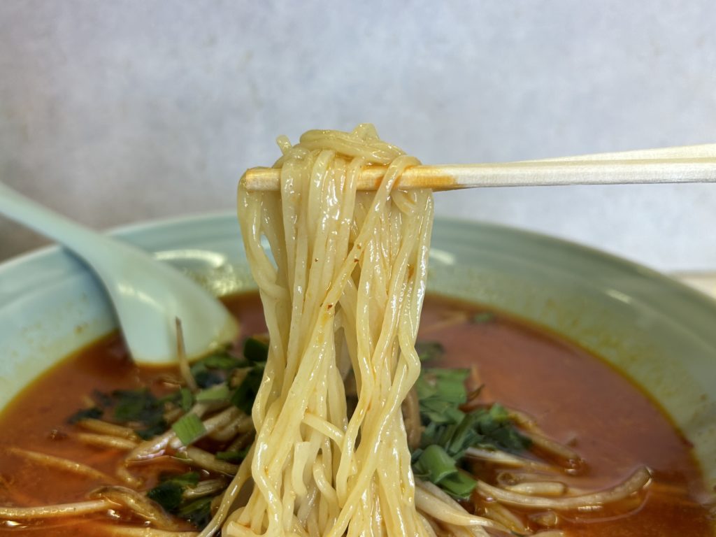 味噌ベースのスープはさらりとしていて、喉越し抜群。唐辛子ベースの辛味が舌先に伝わってきます。