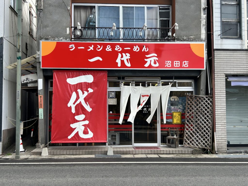 河岸段丘や真田の里として知られる沼田市、この街中にあるこちらが一代元。赤い看板が目を惹きます。