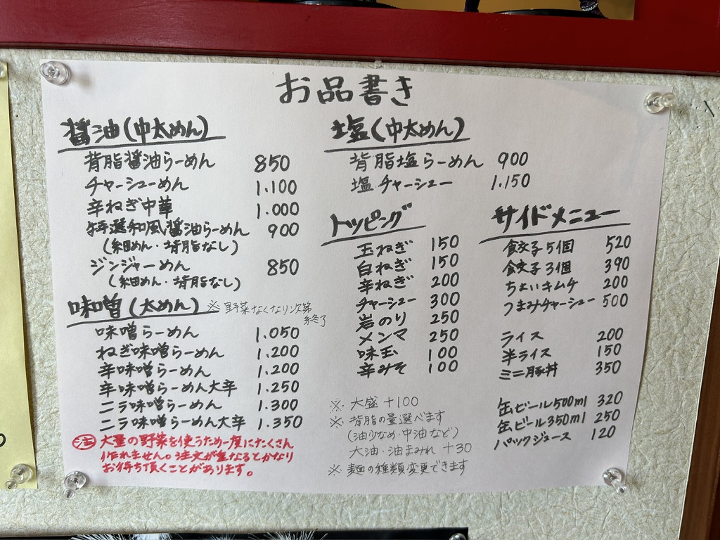 醤油と塩系は中太麺と細麺(メニューによって異なる)。そして味噌は太麺とのこと。さすが新潟!背脂らーめんがラインナップしていますよ。味ごとに色々なメニューがあってどれも美味しそうで迷いますね!