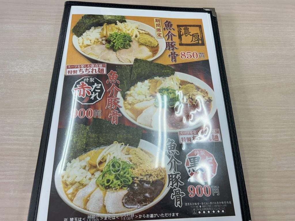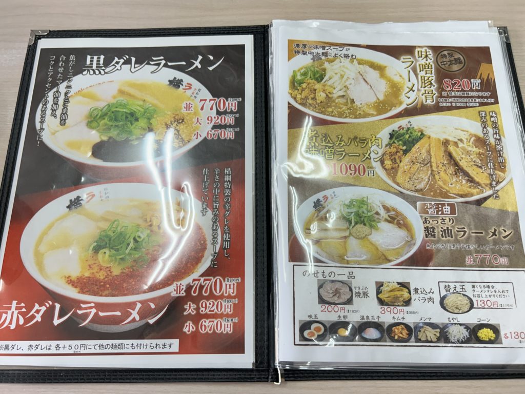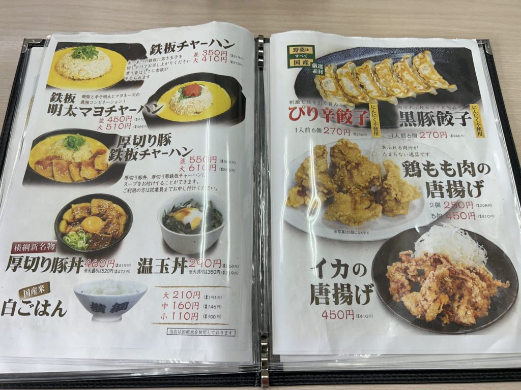 豚骨醤油一筋50年余りのラーメン横綱。お店ごとにメニューが異なるよう。松戸店では、魚介豚骨や、黒ダレ、赤ダレ、味噌豚骨、味玉、チャーシューラーメンなど豚骨をベースにした麺類がラインナップ。野菜ラーメンや彩りラーメンなどもありますよ。