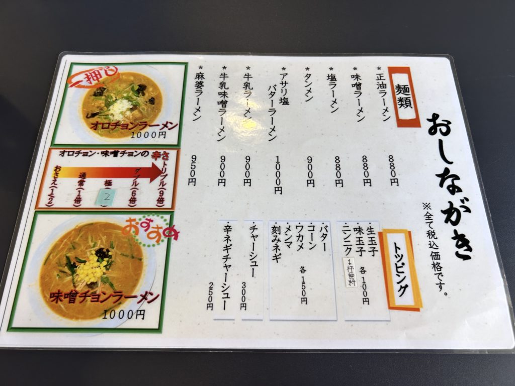 そして、今回の目的「オロチョン」シリーズにはノーマルと味噌の2種類があり、辛さも選べますよ。