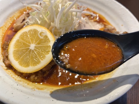 一口すすったスープはコク深く、ガツンと辛さがやってきます。