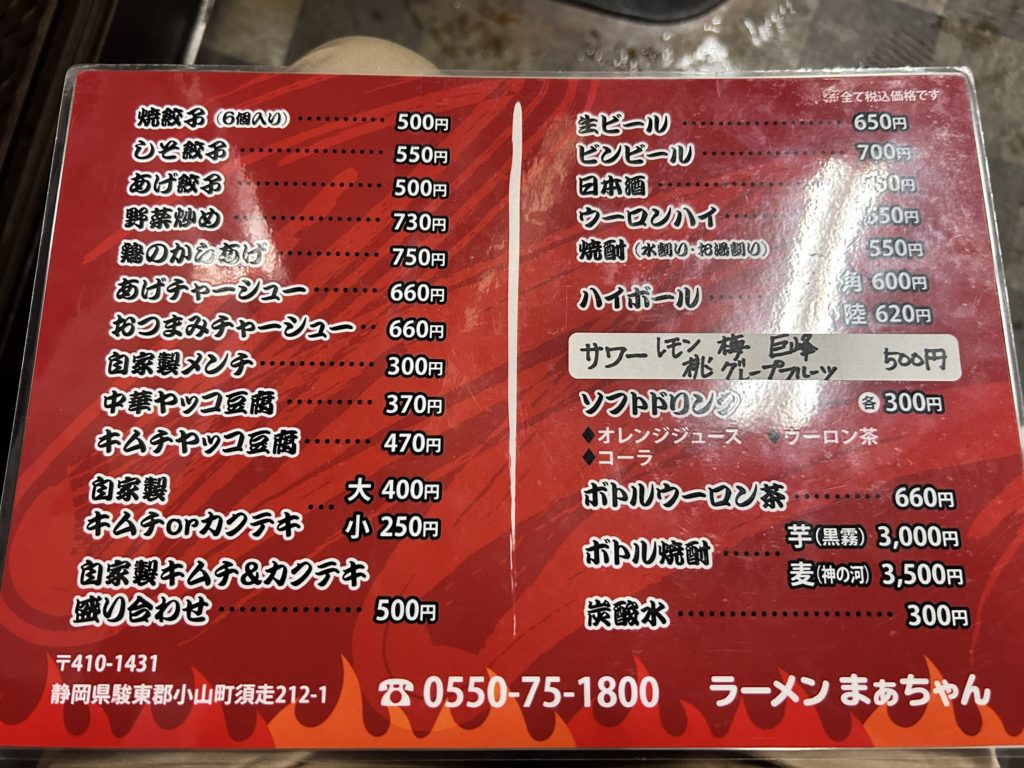 静岡を海側から富士山側へ向かったところ(土地勘なさすぎ)に位置する駿東郡小川町須走の街中にあるこちらがラーメンまぁちゃん。
