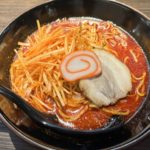 中太麺にがっつりドロドロのスープが絡み、ワクワク感と食欲をそそります。唐辛子のつぶつぶとニンニクの風味が絶妙な美味しさを奏でます。
